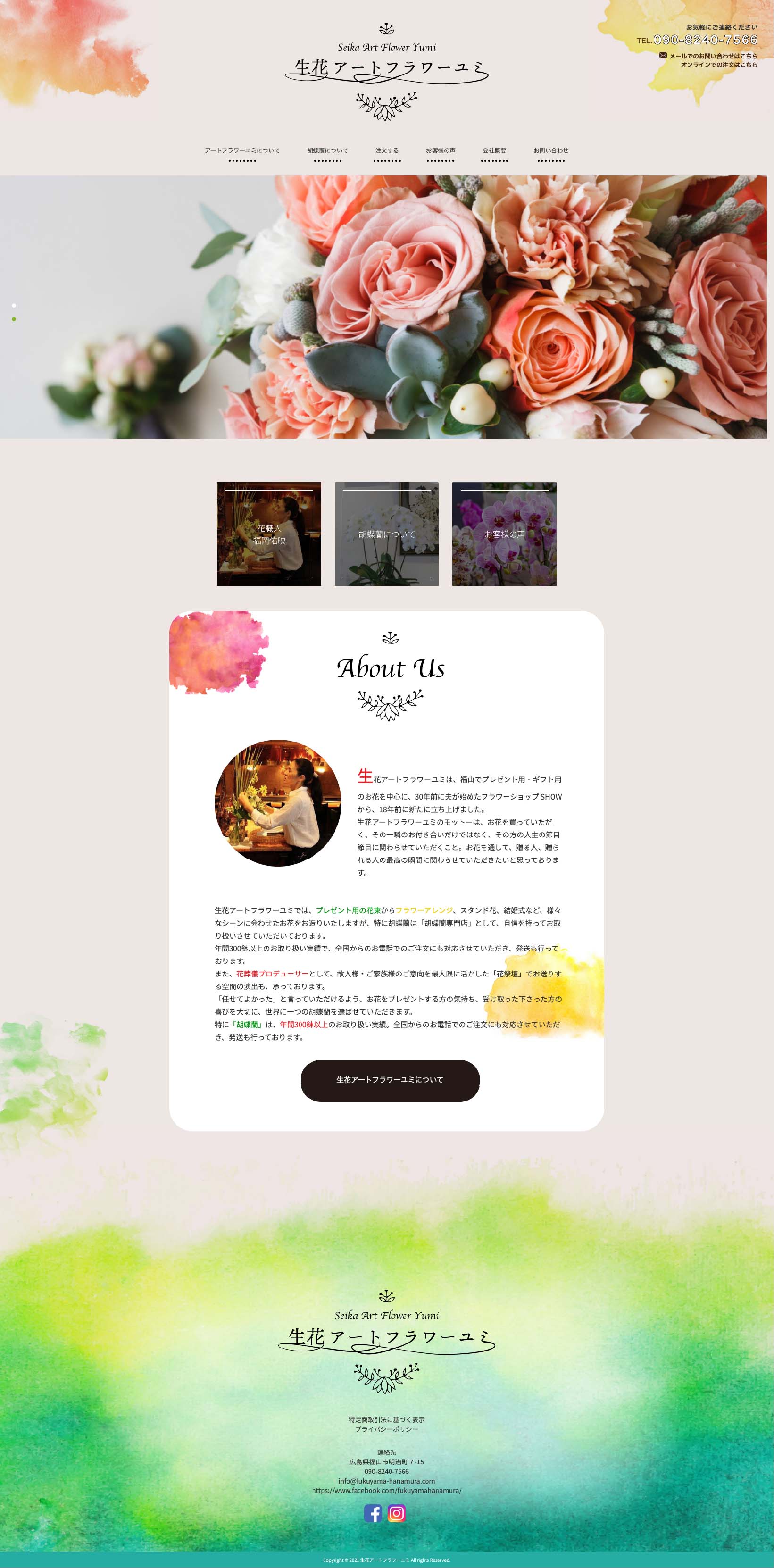 広島の胡蝶蘭専門店 生花アートフラワーユミのコーポレートサイト 制作を担当しました。